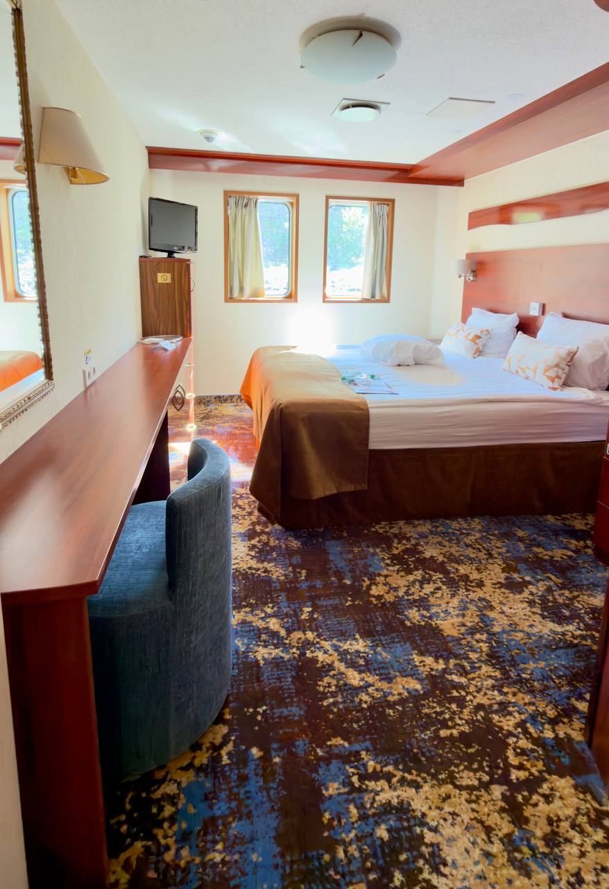 Ana güvertedeki kabinler panorama pencereye, Promenade güvertesindeki kabinler ise Fransız balkonlara sahiptir.