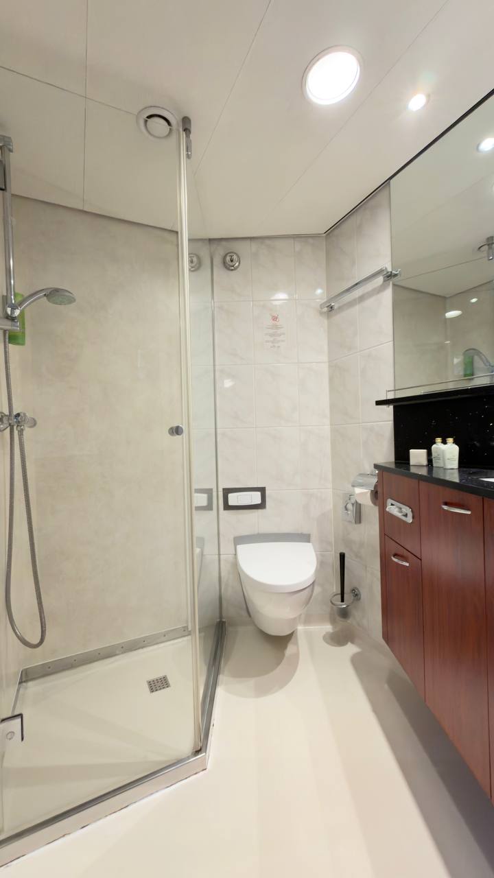 Tüm kabinlerde bireysel olarak ayarlanabilen klima / ısıtma sistemi, uzaktan kumandalı çok kanallı uydu TV, mini kasa, telefon ve saç kurutma makinesi mevcuttur. Lüks banyoda tuvalet, duş ve şık bir lavabo bulunmaktadır.