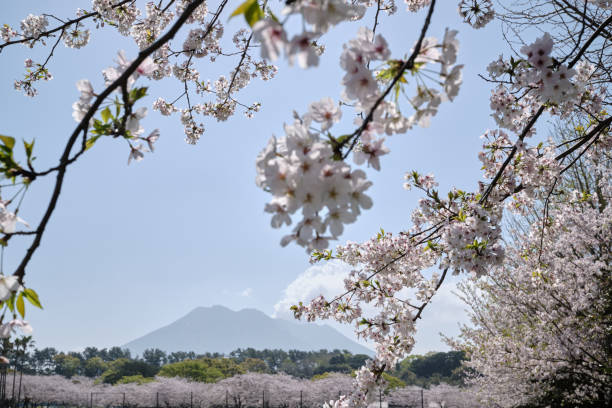 bahçeleri, Kagoshima Körfezindeki ve Sakurajima volkanı'nın özel manzarasının